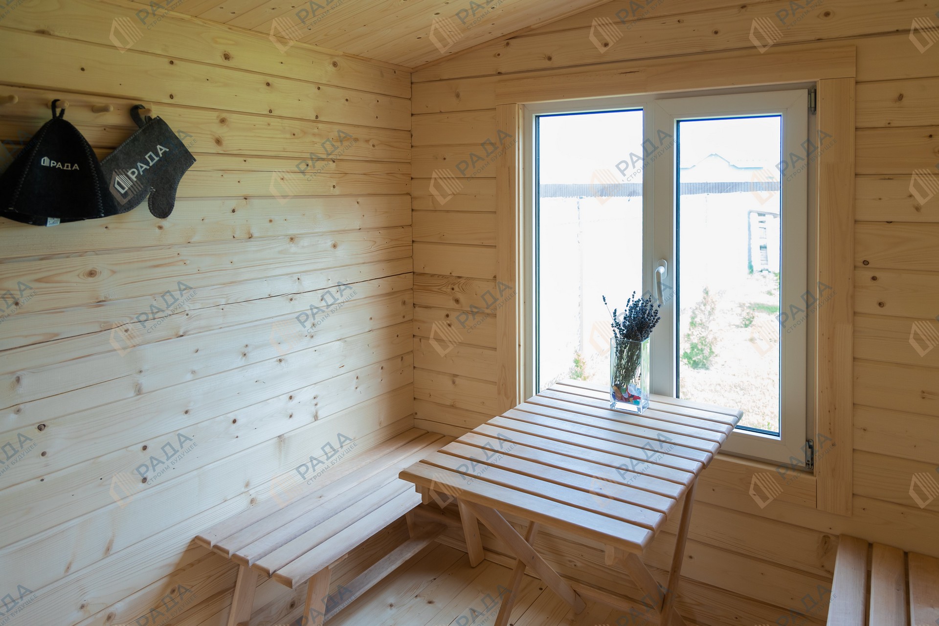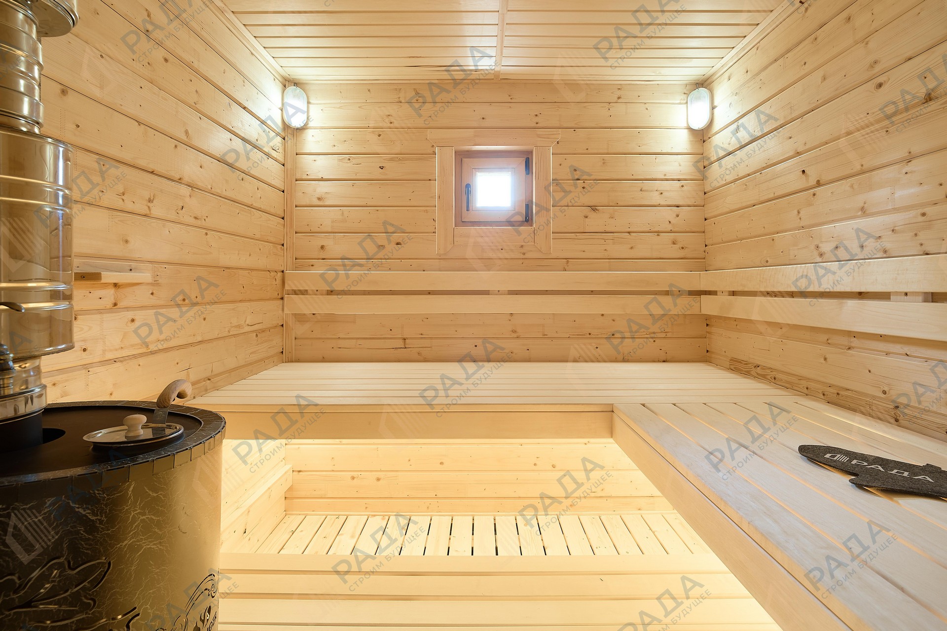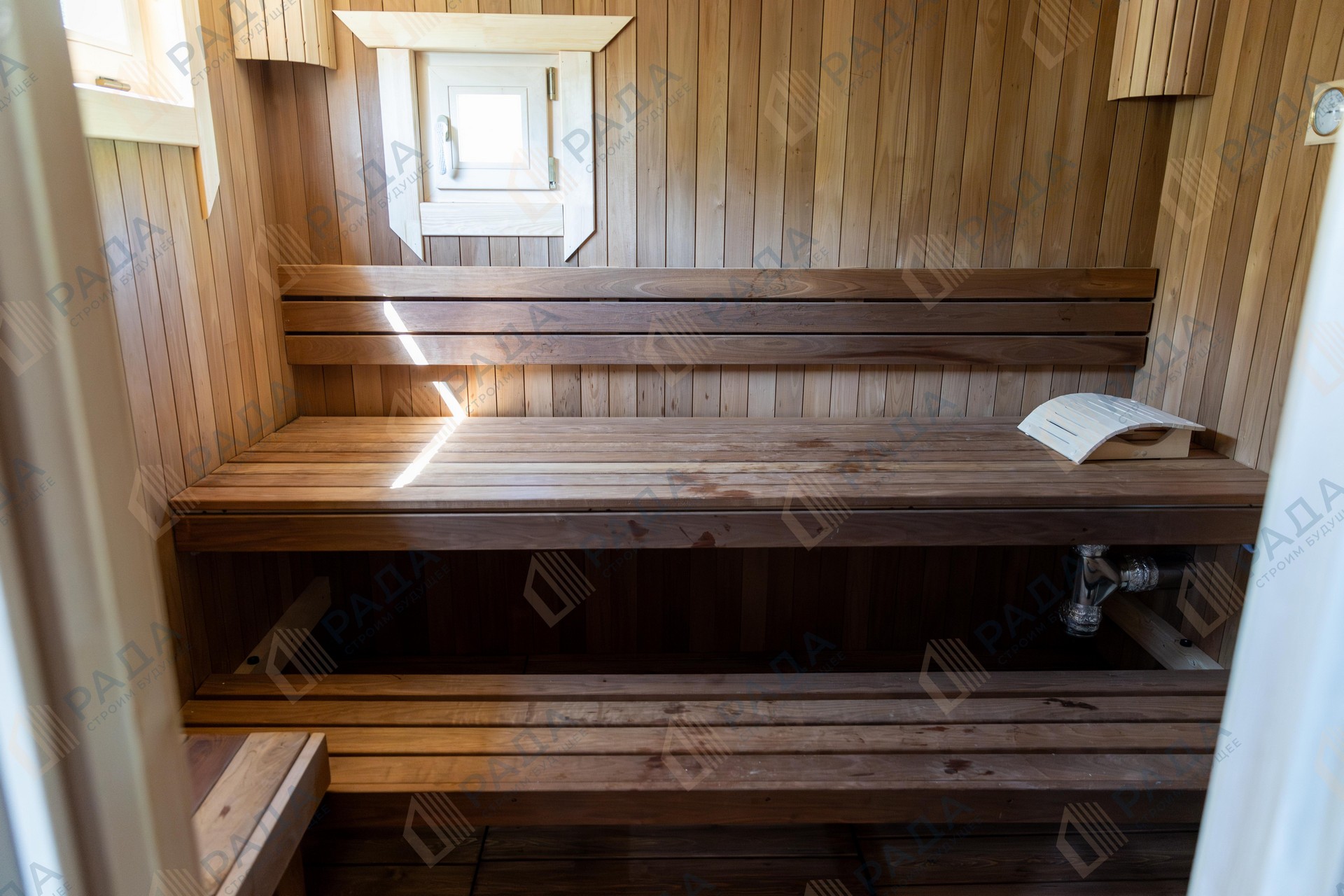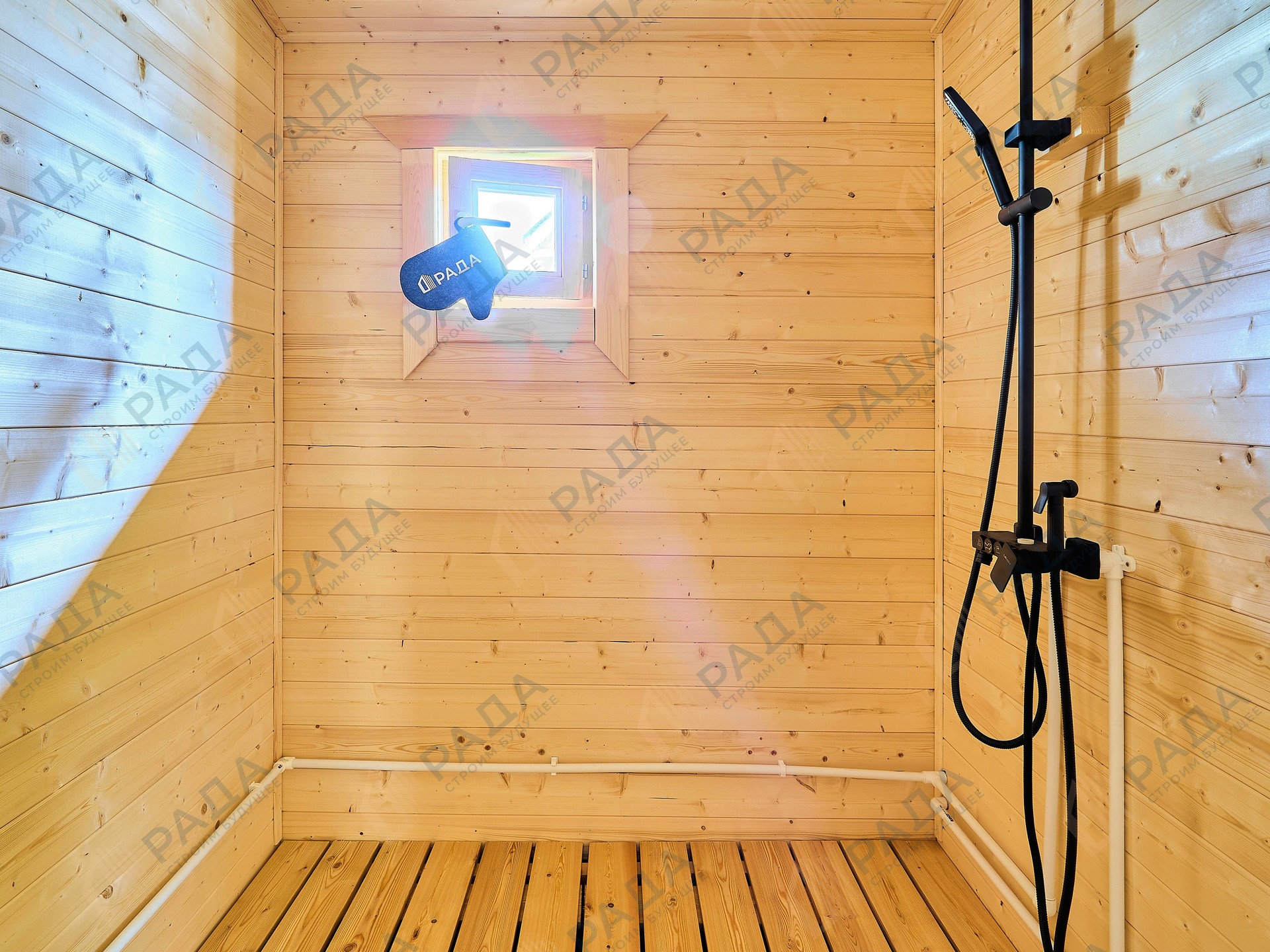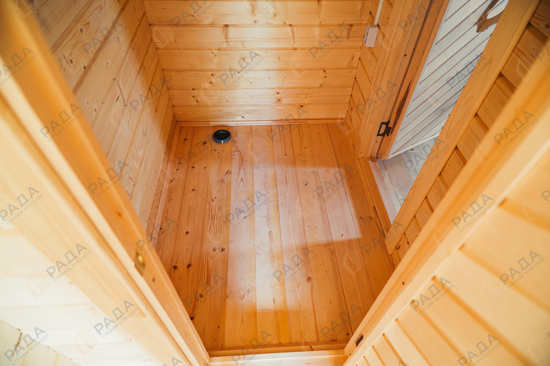 Не гниёт, не чернеет и не трескается. Срок службы — до 50 лет благодаря импрегнации древесины в вакуумной камере и системе проливного пола, исключающей контакт воды с конструкцией.