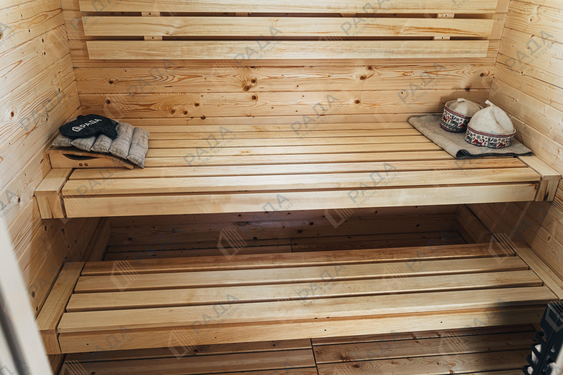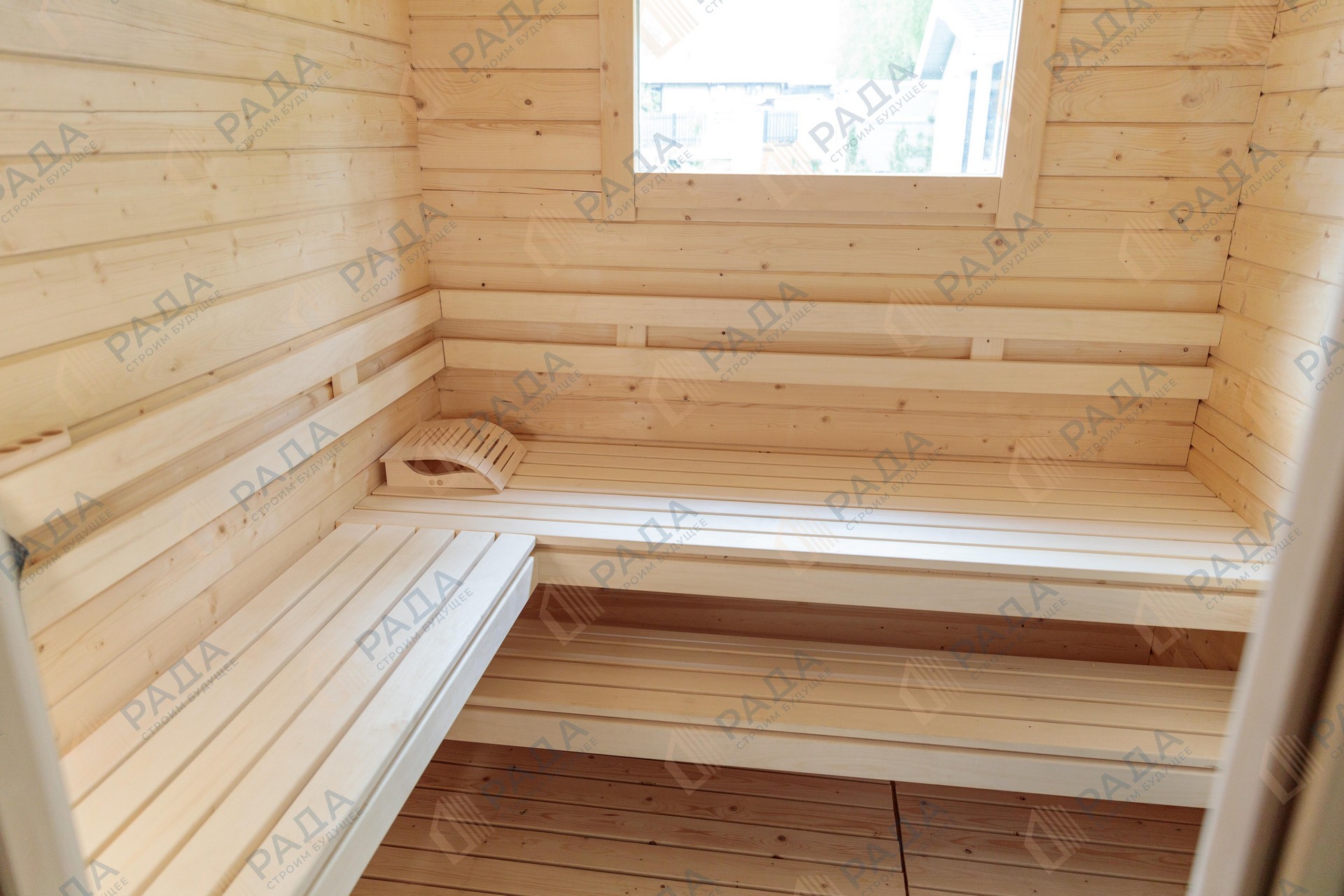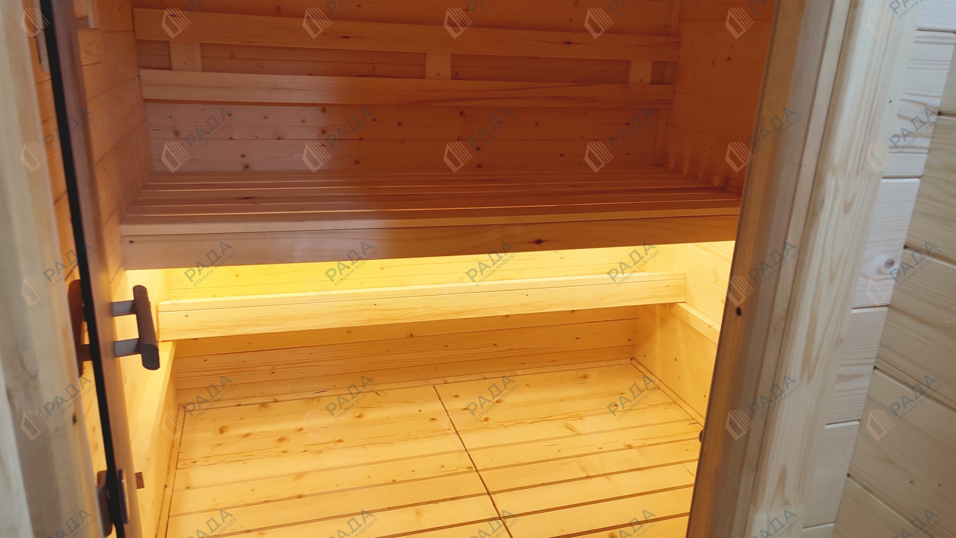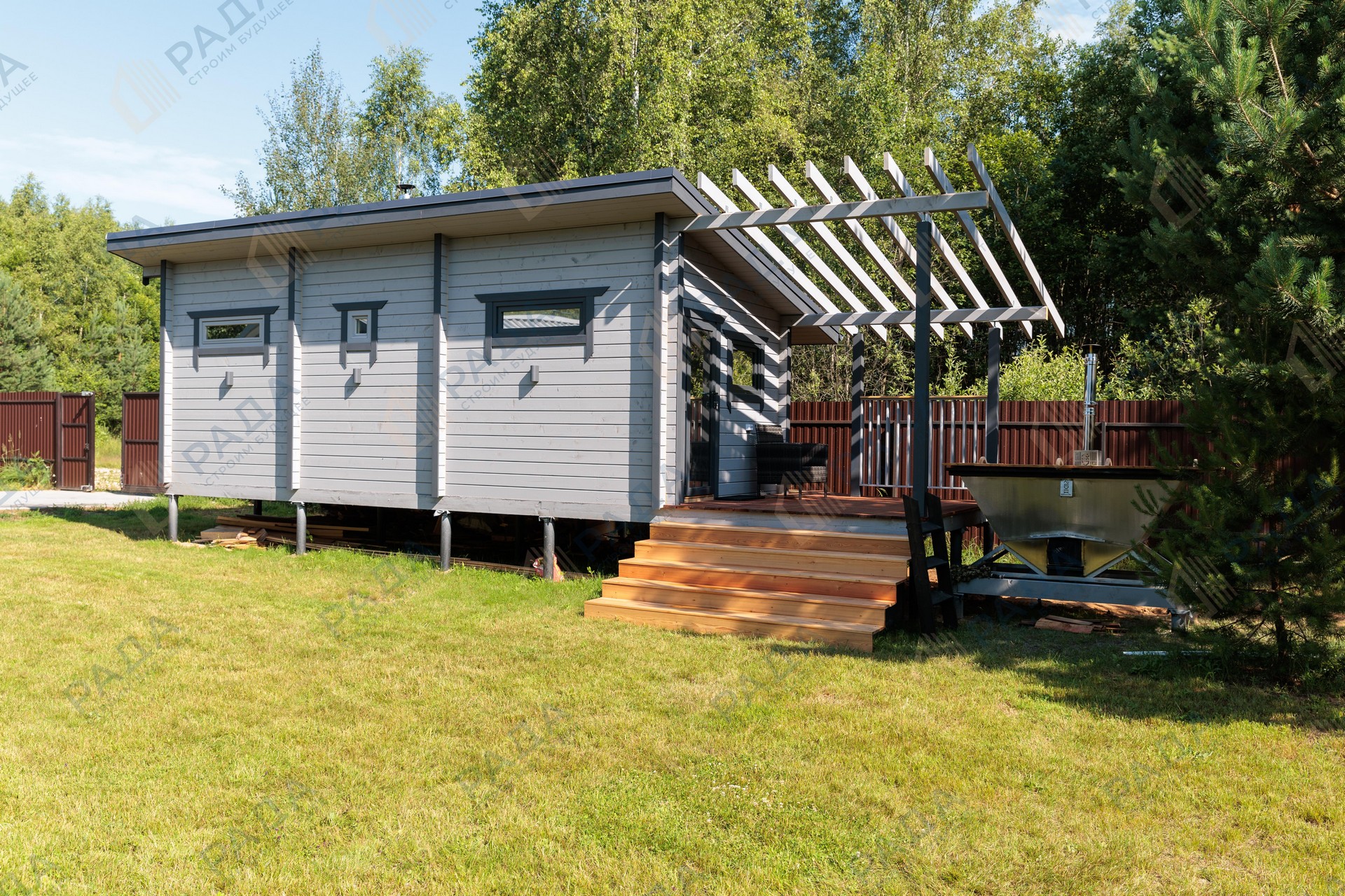 Не гниёт, не чернеет и не трескается. Срок службы — до 50 лет благодаря импрегнации древесины в вакуумной камере и системе проливного пола, исключающей контакт воды с конструкцией.