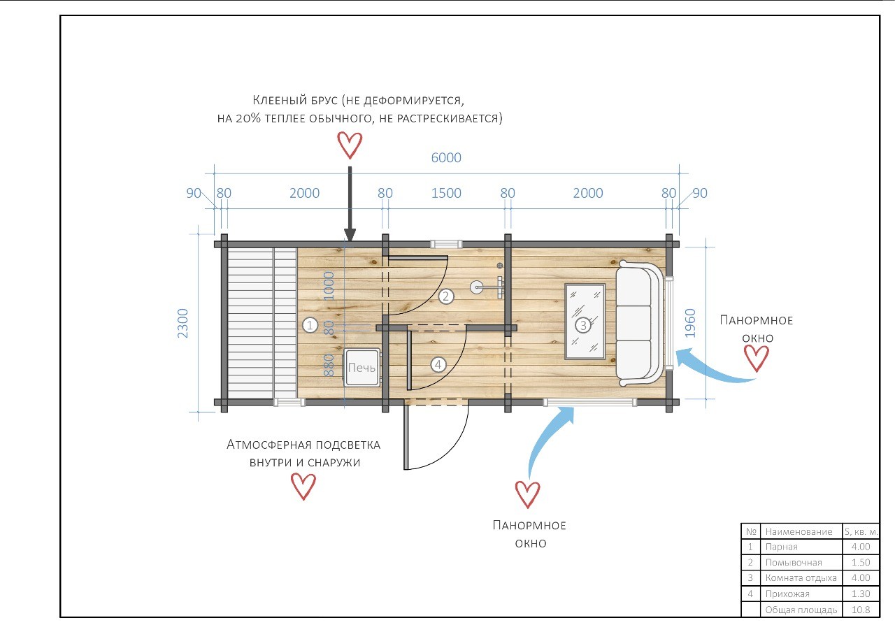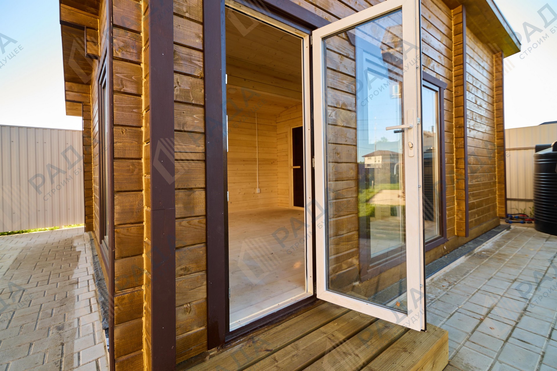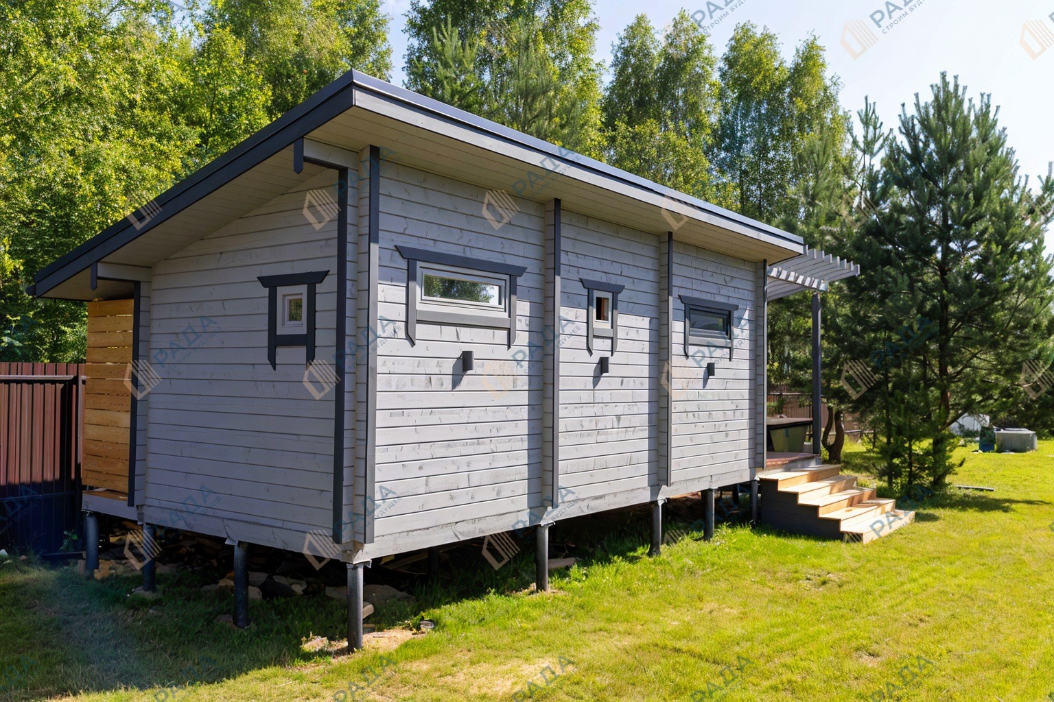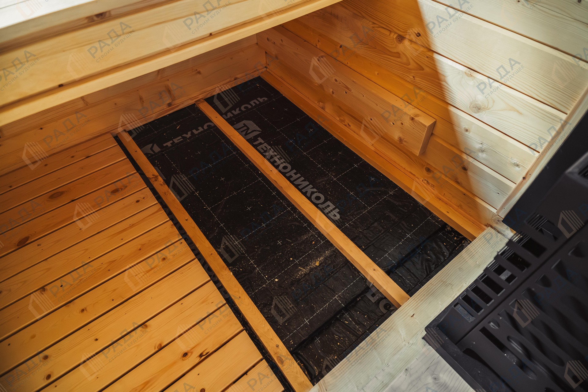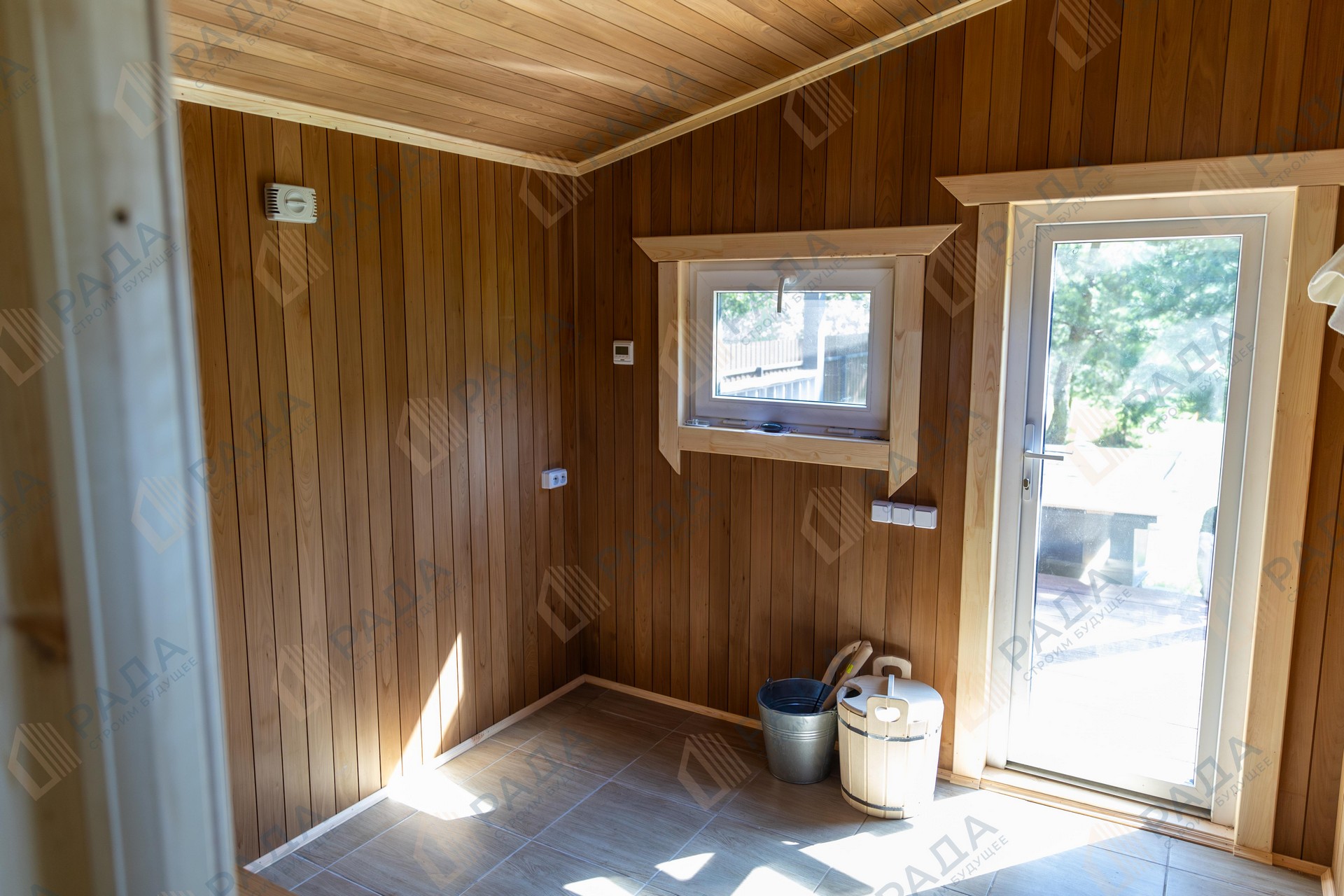 Не гниёт, не чернеет и не трескается. Срок службы — до 50 лет благодаря импрегнации древесины в вакуумной камере и системе проливного пола, исключающей контакт воды с конструкцией.