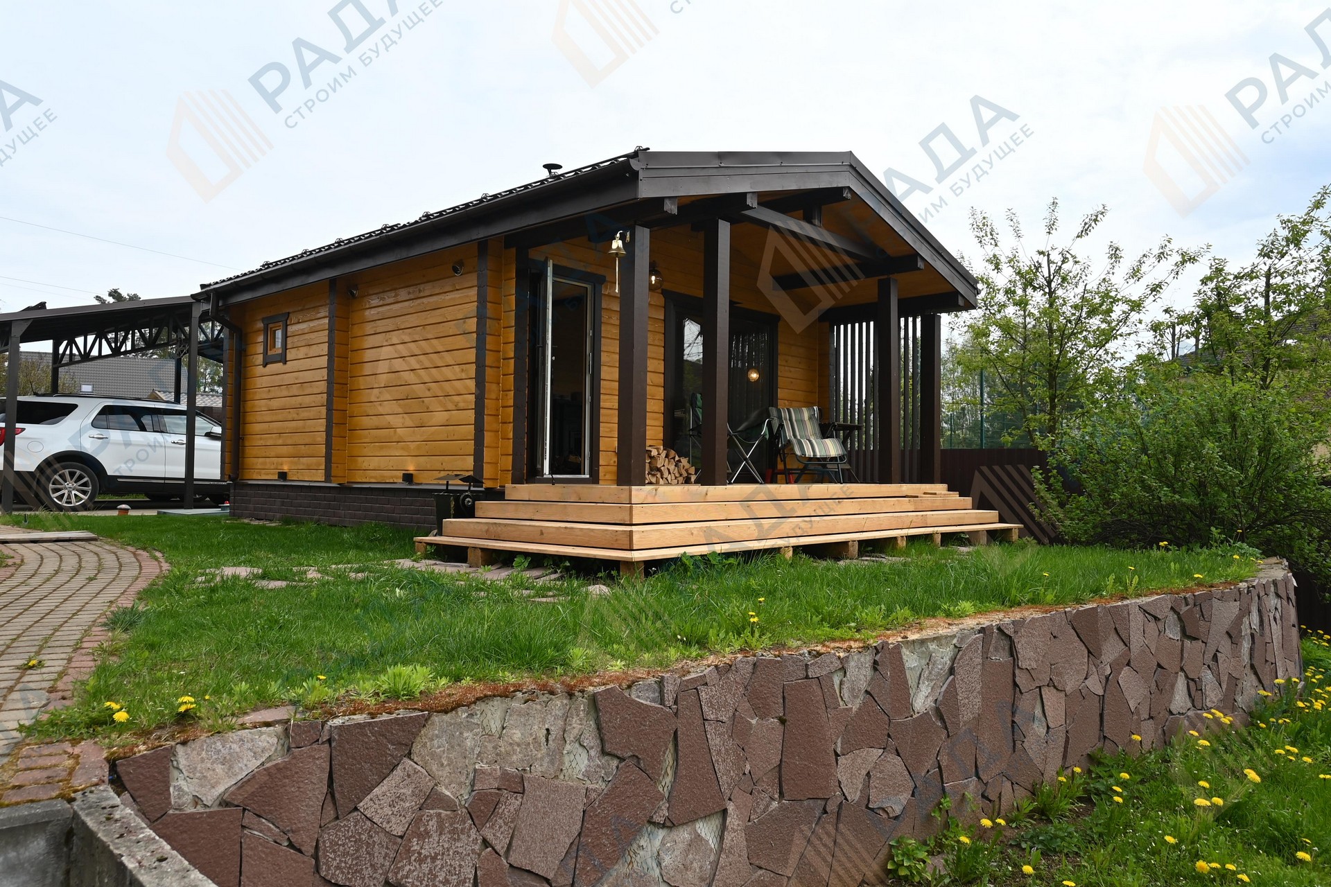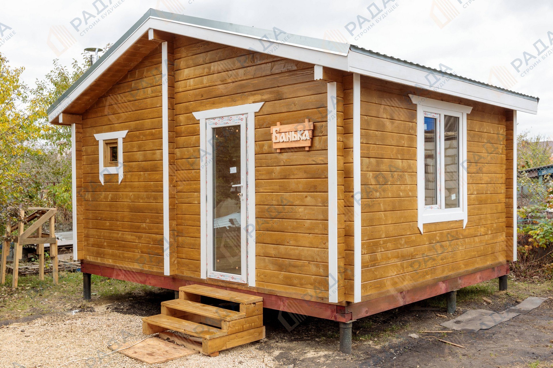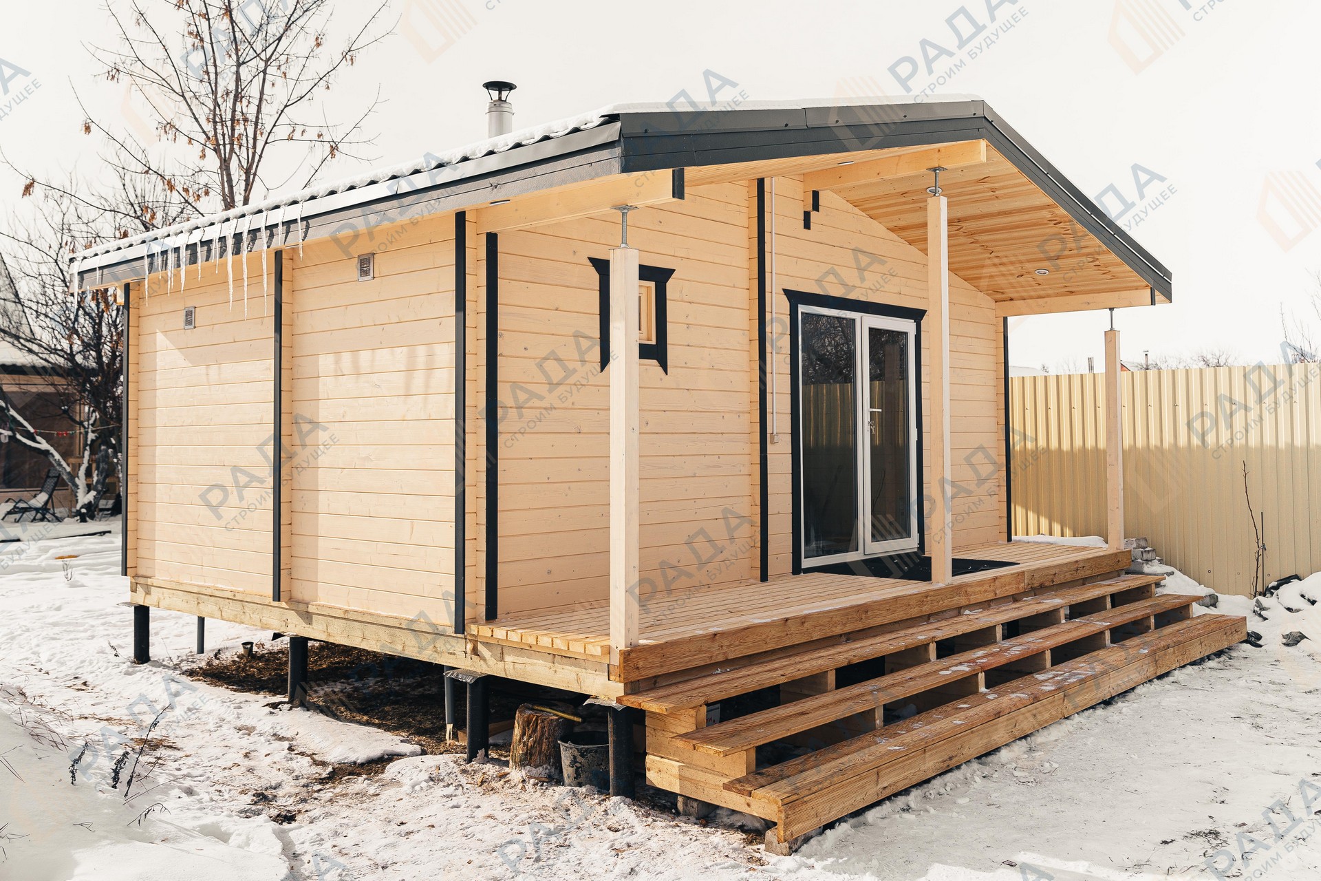 Баня из клееного бруса с крыльцом