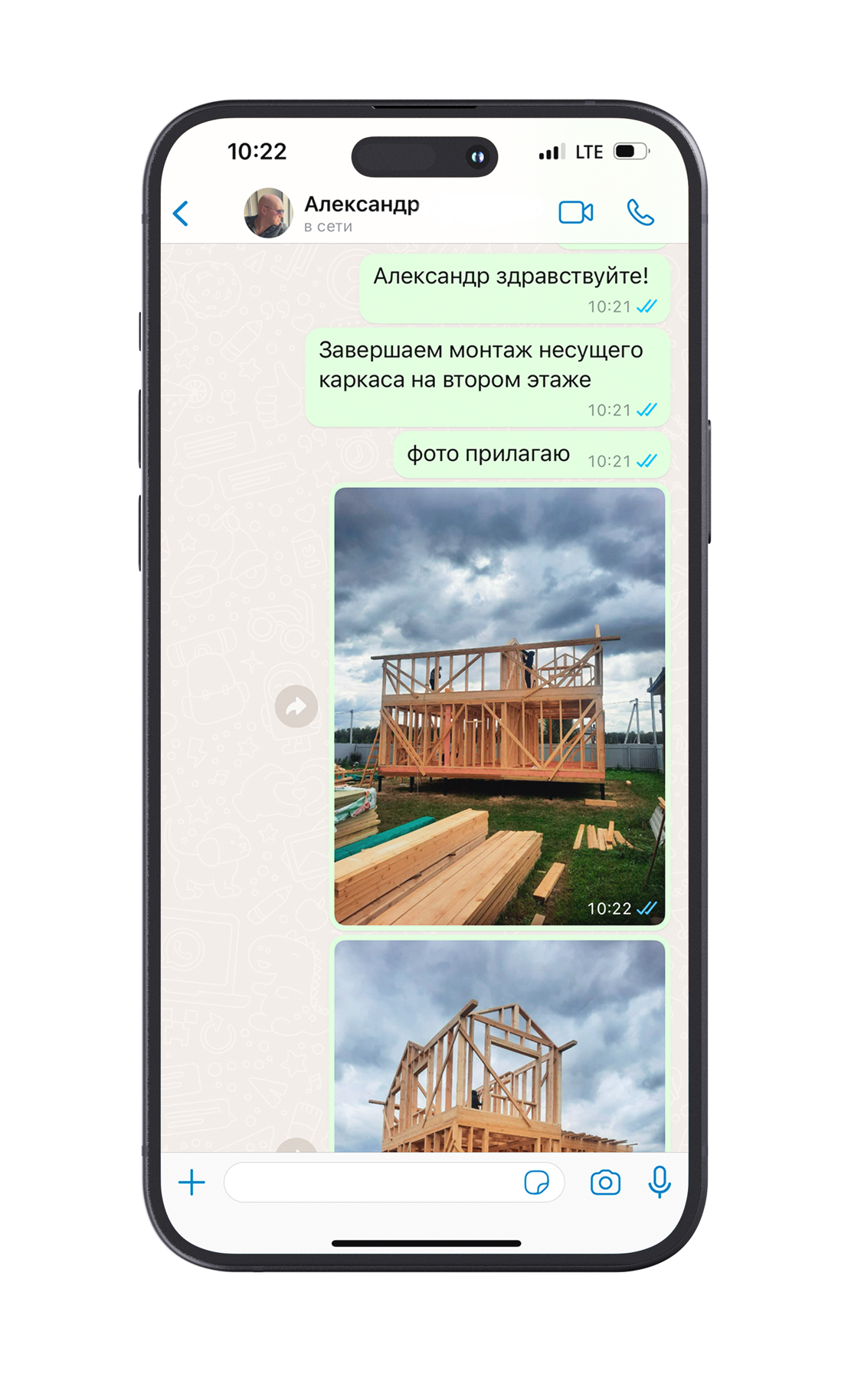 Общий чат в WhatsApp с менеджером проекта, бригадиром и прорабом, где в любое время можно задать вопрос